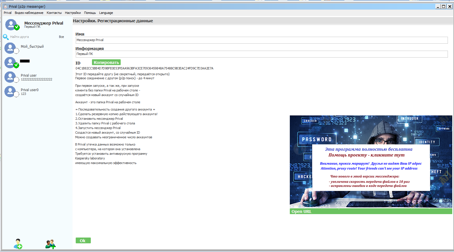 (Примечание. Касается только мессенджера с автообновляемым модулем. При этом мессенджер называется Privalsystems)/